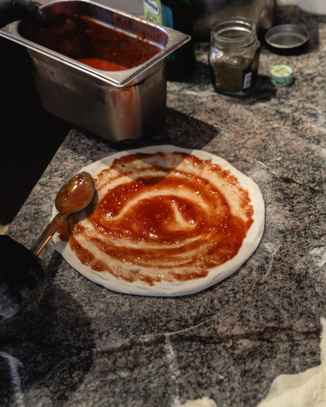pomodoro, mozzarella, cipolle di Tropea, nduja e salame piccante