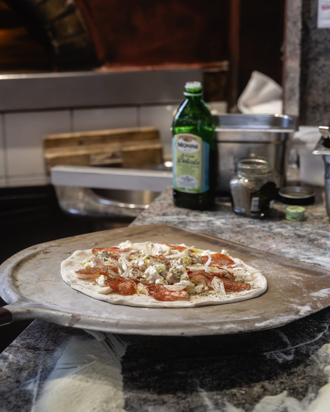 pomodoro, mozzarella, salamino piccante e gorgonzola